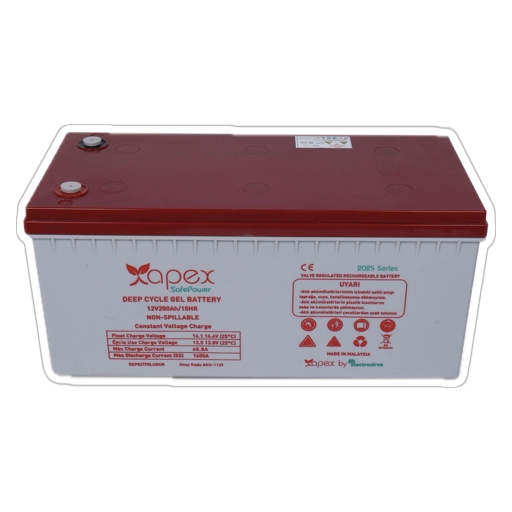 200Ah jel akü, 12V jel akü, solar sistem aküsü, deep cycle jel akü, bakım gerektirmeyen akü, karavan için akü, uzun ömürlü jel akü